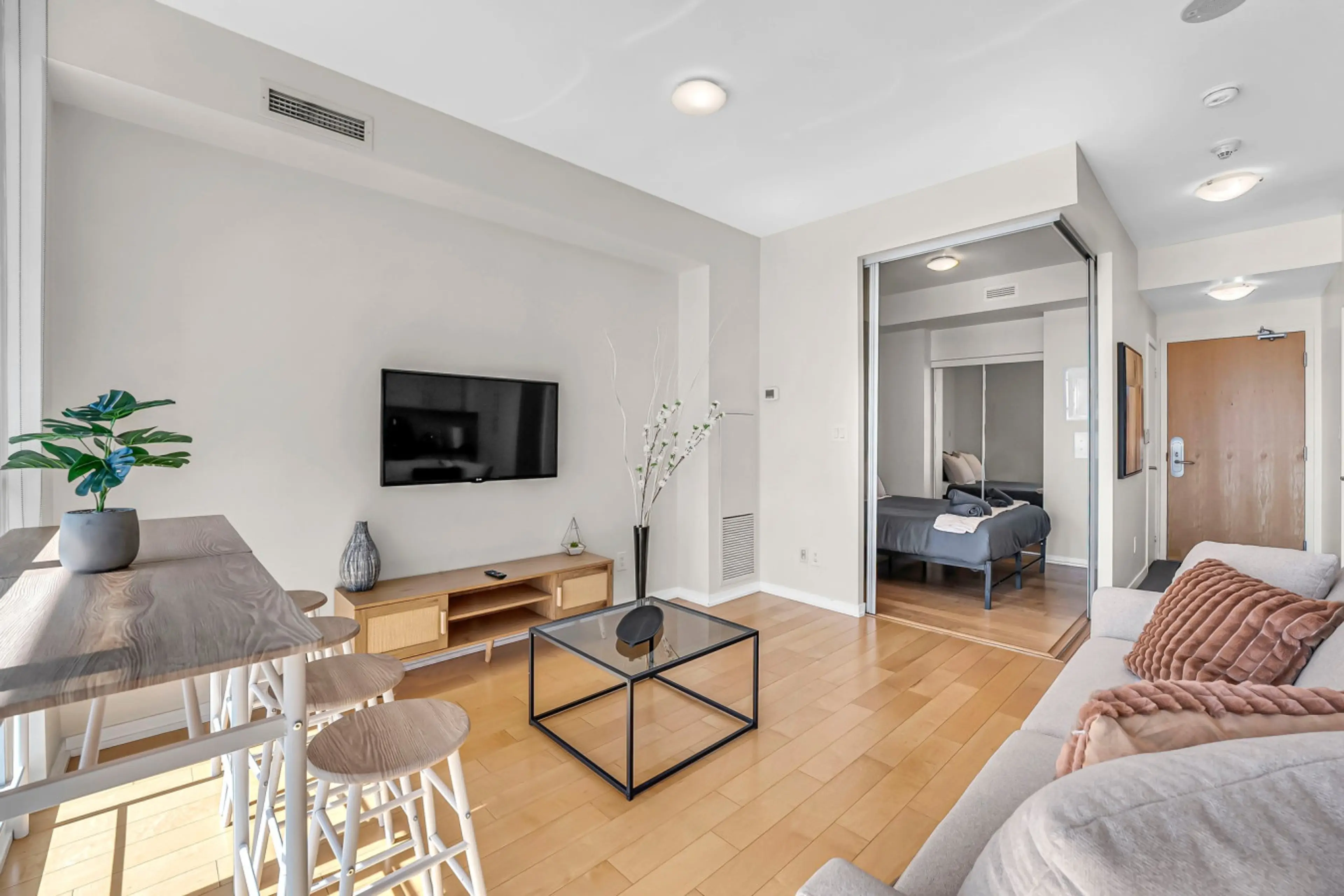 Designed with functionality and comfort in mind, this fully furnished and cozy 600 sqf condo comes with all the essentials you will need for an amazing trip to Toronto. Walking distance to Scotiabank Arena, the Harbourfront, fancy restaurants, the Rogers Centre, and the Metro Toronto Convention Cent...
